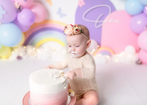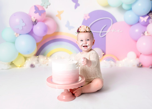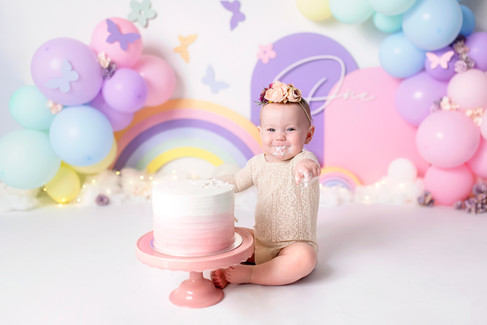 Cake Smash Photography Penrith, Cake smash photography Sydney, Pastel rainbow cake smash, Baby girl Cake smash